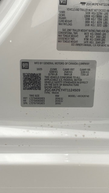 2026 Chevrolet Silverado 2500 LTZ Crew Cab 4WD VIN: 1GC4YPEY2RZ114360 Exterior: Summit White Interior: Jet Black Engine: 6.6L Duramax Turbo-Diesel V8 Transmission: 10-Speed Automatic Drivetrain: 4WD Original MSRP: $89,290