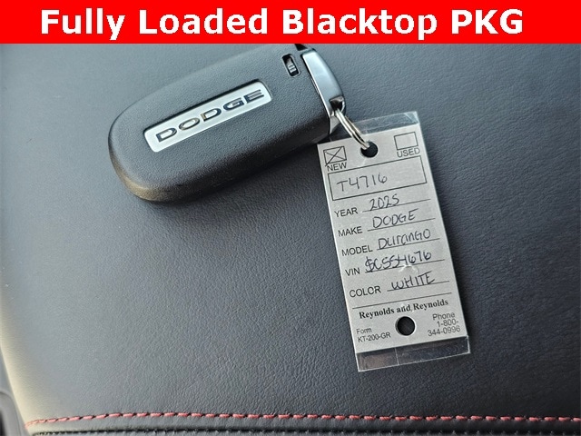 Dealer Discount of $4,680 off MSRP 2025 Dodge Durango R/T AWD 8-Speed Automatic AWD, 115V Auxiliary Power Outlet, 19 harman/kardon Amplified Speakers w/Subwoofer, 7 & 4 Pin Wiring Harness, 825 Watt Amplifier, Adaptive Cruise Control w/Stop, Advanced Brake Assist, Auto High Beam Headlamp Control, Auto-Dimming Exterior Driver Mirror, Black Roof Rails, Blacktop Package, Blind Spot w/Trailer Detection, Bright Cargo Area Scuff Pads, Class IV Receiver Hitch, Dual Remote USB Port - Charge Only, Exterior Mirrors w/Heating Element, Exterior Mirrors w/Memory, Exterior Mirrors w/Supplemental Signals, Floor Console w/Leather Armrest, Forged Carbon Fiber Interior Accents, Full Speed Forward Collision Warning Plus, Gloss Black Badges, Gloss Black Exterior Mirrors, Heated Second Row Seats, Integrated Roof Rail Crossbars, Lane Departure Warning Plus, Leather Trimmed Bucket Seats, Leather Wrapped Door Panels, LED Auxiliary Low Beam & Turn Signal, ParkView Rear Back-Up Camera, Power 6x9 Multi-Function Foldaway Mirrors, Power 8-Way Driver Memory 8-Way Passenger Seats, Power Driver/Passenger 4-Way Lumbar Adjust, Power Liftgate, Power Sunroof, Power Tilt & Telescopic Steering Column, Premium Instrument Panel, Quick Order Package 22U R/T Premium, Radio/Driver Seat/Mirrors Memory, Red Accent Stitching, Satin Black Dodge Tail Lamp Badge, Suede Headliner, Trailer Brake Control, Ventilated Front Seats, Wheels: 20" x 8.0" Black Noise Aluminum.