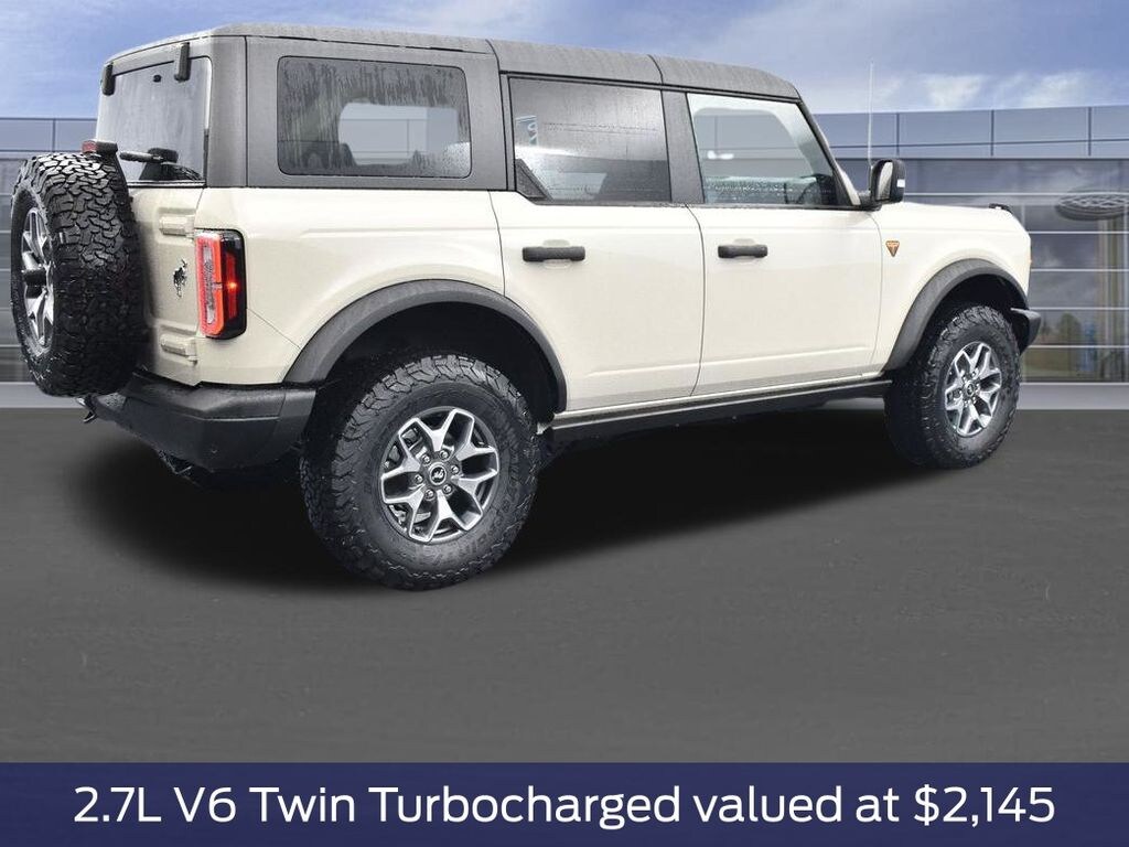 Badlands Series, Dual-Zone Electronic Climate Control, Luxury Package, 360-Degree Camera, Adaptive Cruise Control, AM/FM Radio, 12 Speakers, Satellite Digital Audio Radio Service, Desert Sand, 2.7L EcoBoost V6 Engine, 10-Speed Automatic Transmission, LT285/70R17 All-Terrain Tires (33"), 4.46 Rear Axle-Locking Differential, Front Axle-Locking Differential, Rock Rails, Remote Start System, 17" Machined Gray-Painted Aluminum Wheels, Hard Top, Gray Molded-In-Color, Sound Deadening Headliner, On-Vehicle Storage-Top/Door Bag.