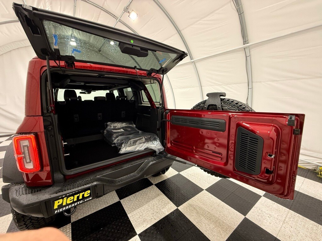 Ruby Red Metallic Tinted Clearcoat, Dual-Zone Electronic Climate Control, 2.7-Liter EcoBoost V6 Engine, 10-Speed Automatic Transmission, LT315/70R17 Rugged Terrain Tires (35-Inch), Rock Rails, Remote Start System, Leather-Trimmed and Vinyl Black Seats, Body-Color Painted Hard Top with Sound-Deadening Headliner, Sasquatch Package with 4.7 Rear Axle Locking Differential and Front Axle Locking Differential, Engine Block Heater, Sasquatch Graphic, Heavy-Duty Modular Front Bumper, 17-Inch Black Aluminum Beadlock Alloy Ring, Storage Bag for Front Top Panels and Doors.