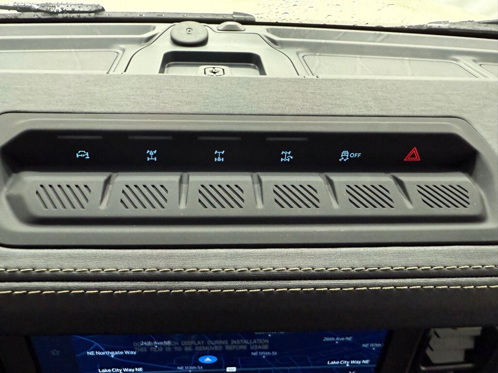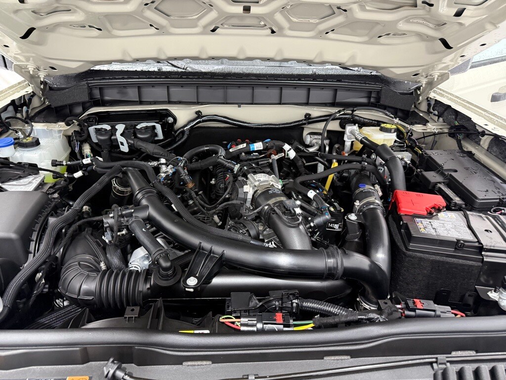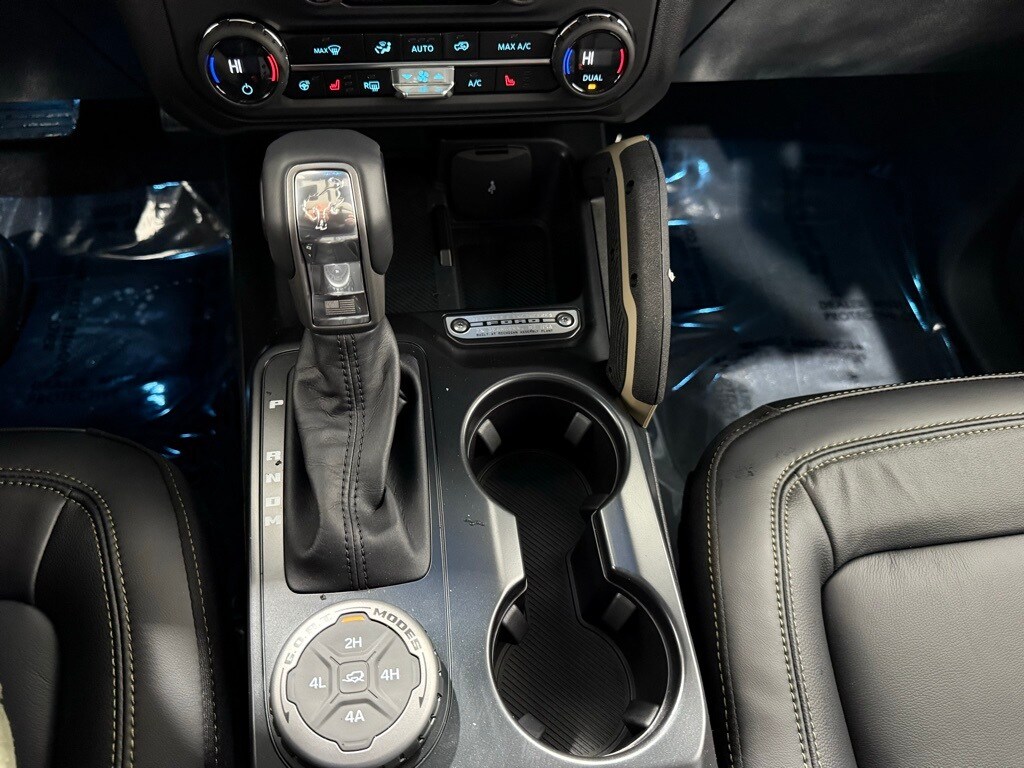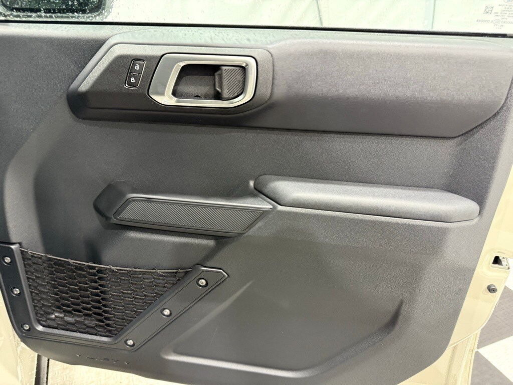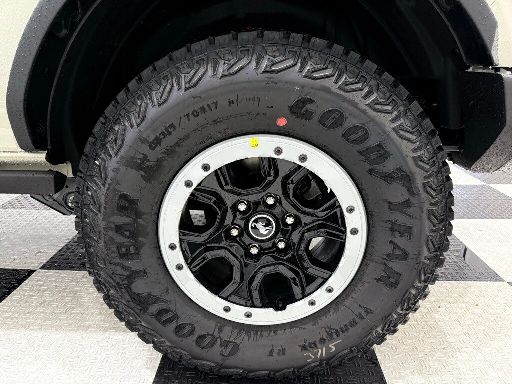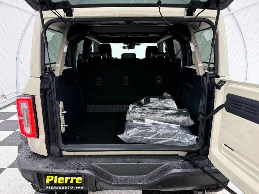 Desert Sand exterior paint; Dual-zone electronic climate control; 2.7-liter EcoBoost V6 engine; 10-speed automatic transmission; LT315/70R17 rugged terrain tires (35-inch diameter); Rock rails; Remote start system; Black leather-trimmed vinyl seats; Body-color painted hard top with sound-deadening headliner; Sasquatch Package with 4.7 locking rear axle and locking front axle differential; Heavy-duty modular front bumper; 17-inch black aluminum beadlock-capable wheels with alloy rings; Storage bag for front roof panels and doors.