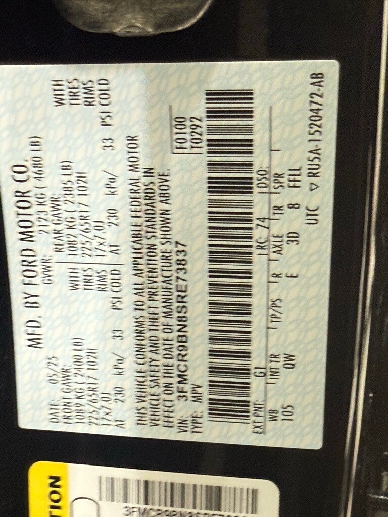 At Bill Pierre Ford, we service not only the Seattle area Ford customer needs, but also the entire state of Washington and beyond. Our customers come from Seattle, Bremerton, Bellevue, Everett, Wenatchee, Arlington, Burlington, Marysville, Lynnwood, Tacoma, and more. 1.5L EcoBoost 8-Speed Automatic Shadow Black All vehicles are one of each. A dealer documentary service fee of up to $200 may be added to the sale price or capitalized cost. All financing is subject to credit approval. Prices exclude tax, title, and license and are valid for Washington residents only. All transactions are negotiable including price, trade allowance, interest rate (of which the dealer may retain a portion), term, and documentary service fee. Any agreement is subject to execution of contract documents. Every reasonable effort is made to ensure the accuracy of this data. Please verify any information in question with a dealership sales representative. Expires (date) **FACTORY REBATE(S) Purchaser may not qualify for all rebates. Please contact sales department for details. Price includes: $1150 - Bonus Customer Cash. Exp. 01/05/2026 $500 - Retail Bonus Cash. Exp. 01/05/2026