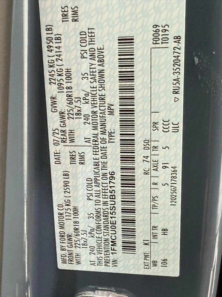 Glacier Gray Metallic Tri-Coat, 225/55R19 All-Season Tires, 19" Aluminum Wheels with Painted Pockets, Fast Charging Adapter (NACS), Tire Sealant and Inflator Kit, BlueCruise Equipment (90-Day Trial), Connect Package (1-Year Included), Mobile Power Cord, Interior Protection Package, Cargo Floor Liner, Floor Liners Front/Rear Without Carpeted Mats