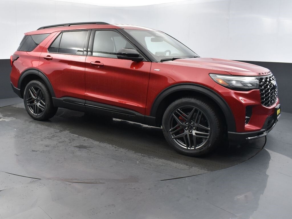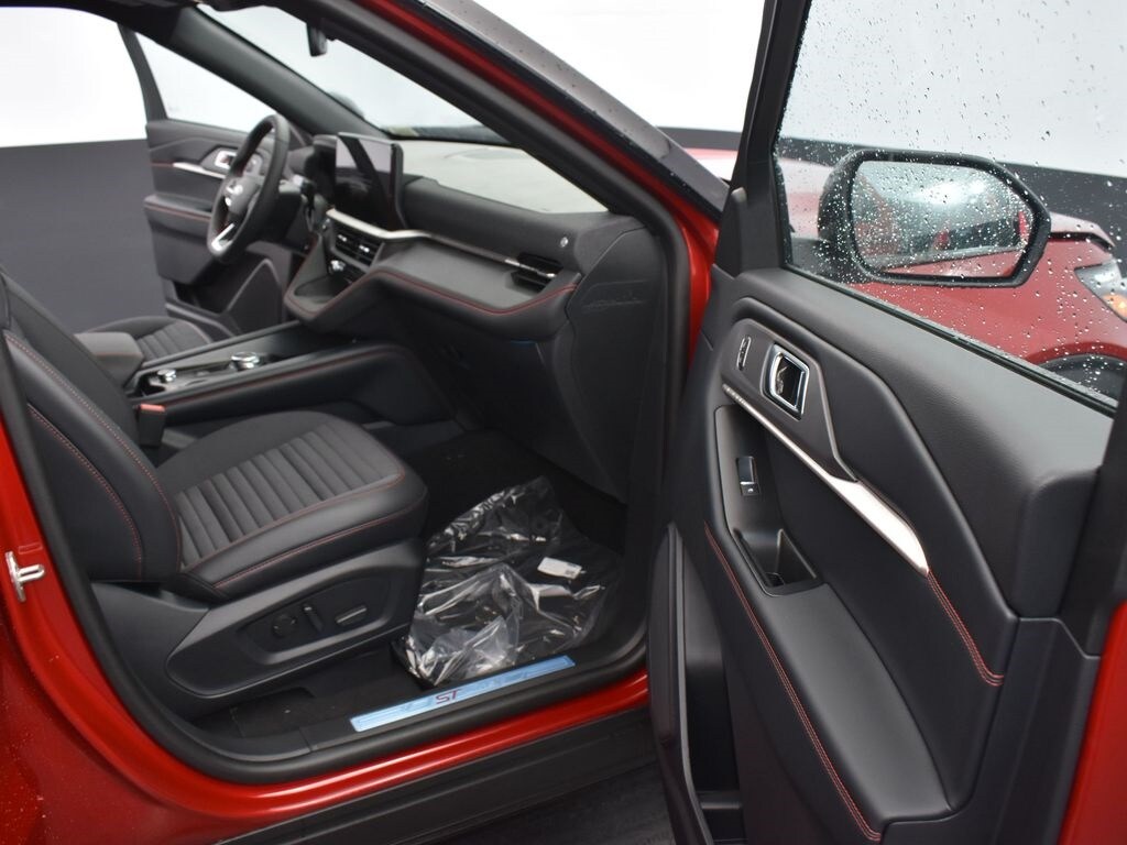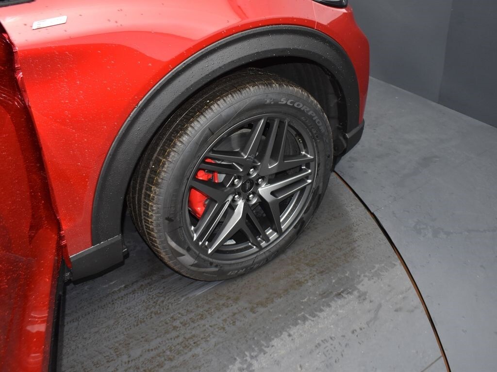 Rapid Red Metallic Tinted Clearcoat, BlueCruise equipment (90-day trial), Premium Package, ambient lighting, second row heated seat, auto-dimming rearview mirror, wireless charging pad, 110V/150W AC power outlet, ST-Line Street Pack, P275/45R21 all-season black sidewall tires, performance brakes, 21" aluminum wheels, mini spare and jack kit, front license plate bracket.