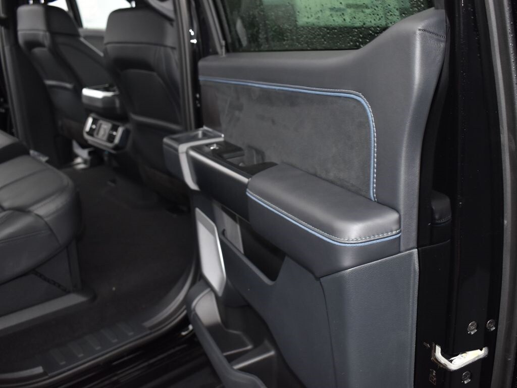 agate black metallic, equipment group 702a high, 20-inch painted gloss ebony black wheels, electronic 10-speed automatic transmission, twin panel moonroof, 3.5l v6 ecoboost engine, 275/60r20 black sidewall all-terrain tires, unique multi-contour leather bucket seats, 7,200 lbs payload package gvwr, heads-up display, b&o unleashed sound system by bang & olufsen radio, max tow electronic locking with 3.55 axle ratio, fleet customer powertrain limited warranty, black/blue