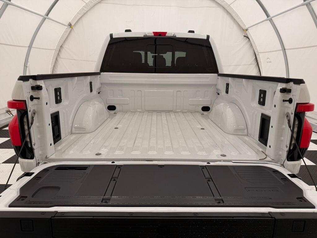 2025 Ford F-150 Lightning Lariat 4x4 SuperCrew in Oxford White with ActiveX trimmed seats ** Extended Range battery + dual electric motors (AWD) ** single-speed transmission ** EPA-est. 320-mile range ** 70 MPGe combined (78 city/63 hwy) ** 48 kWh/100 mi; est. annual fuel cost $1,150; you save about $3,750 in fuel over 5 years vs. the average new vehicle ** Equipment Group 511A (Lariat) ** 20" aluminum wheels (included) ** 255/60R20 all-season tires (included) ** BlueCruise equipped (1-year plan) ($495) ** 15.5" SYNC 4A touchscreen w/ wireless Apple CarPlay/Android Auto, navigation, and premium connected services ** Pro Power Onboard 9.6kW with multiple outlets + Mega Power Frunk ** dual-zone climate, heated/ventilated front seats, heated rear seats, and premium interior trim ** Ford Co-Pilot360 Assist+ safety suite w/ adaptive cruise, lane centering, blind spot monitoring, and pre-collision assist w/ AEB. new MSRP was $80,460
