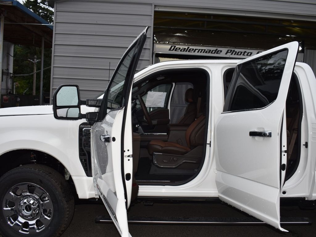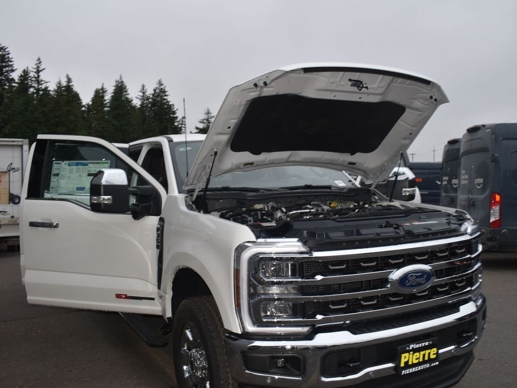 4WD, Star White, Preferred Equipment Package 710A, 6.7 high output Power Stroke, 10-speed automatic TorqShift, 3.31 electronic-locking axle, Chrome Package, chrome PVD aluminum wheels (20"), power running boards, 12000# GVWR package, jack, functional, 360-degree camera, B&O Unleashed sound system, connected navigation (1-year trial), Ford Co-Pilot360 2.0, FordPass Connect 5G Wi-Fi hotspot telematics modem, intelligent access with push-button start, mono beam coil spring front suspension with stabilizer bar, SiriusXM with 360L (not available in AK & HI), SYNC 4 with enhanced voice recognition and 12" screen, wireless charging pad.