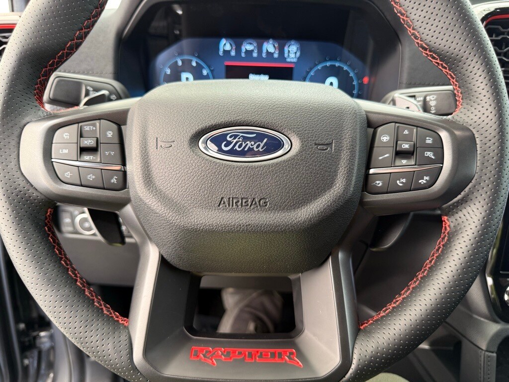 One-Touch Up/Down Driver Window, 12" Center Touchscreen, Ambient Lighting, Digital Instrument Cluster, Dual Illuminated Vanity Mirrors, Dual Zone Automatic Climate Control, Heated Steering Wheel, Power Locks and Windows, 12V and USB Powerpoints, Raptor Unique Power Heated Front Seats with Driver Memory, Blind Spot Information System with Cross-Traffic Alert, Anti-Lock Braking System, FOX Live Valve Shocks, Intelligent Access with Push Button Start, Lane Keeping System, Pre-Collision Assist with Automatic Emergency Braking, Rear View Camera, Remote Keyless Entry, Remote Start System, SiriusXM, SYNC 4A, Upfitter Switches.