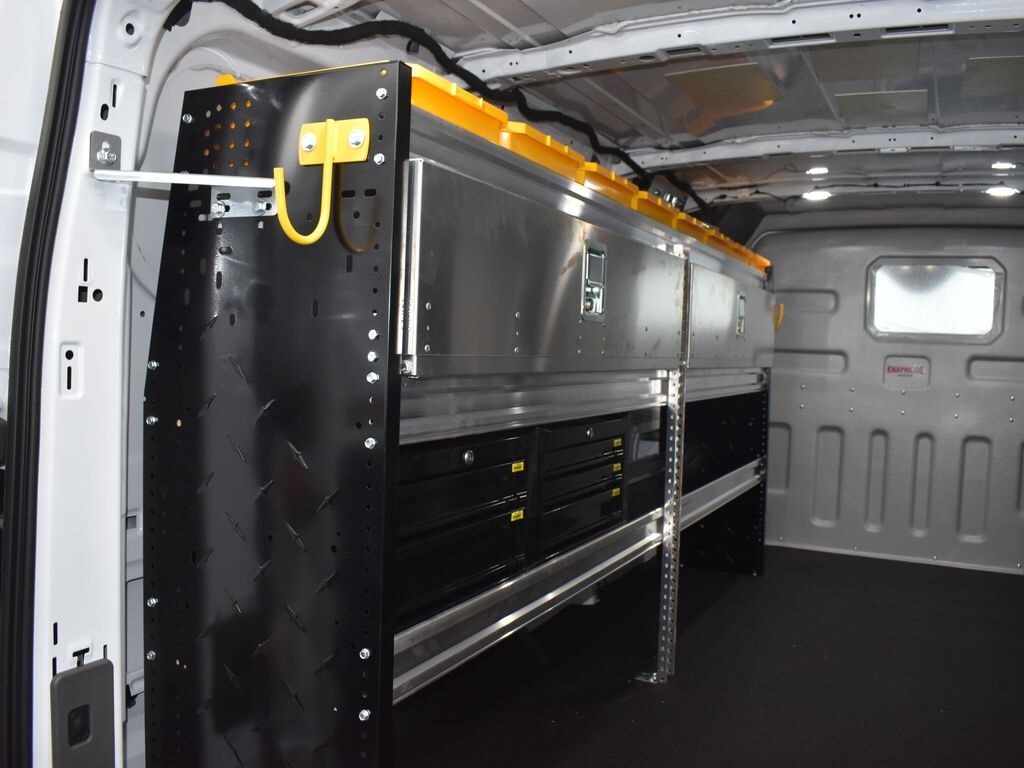3.73 non-limited slip axle, rear compartment lighting, vinyl front/rear floor covering, tie down cargo hooks, 253 degree opening, 9150-pound gross vehicle weight rating package, 2-way driver/passenger palazzo vinyl, bulkhead with window, radio - sync3, 4-inch screen, electrician trade package, 2 additional keys, e-85 flex fuel capable.