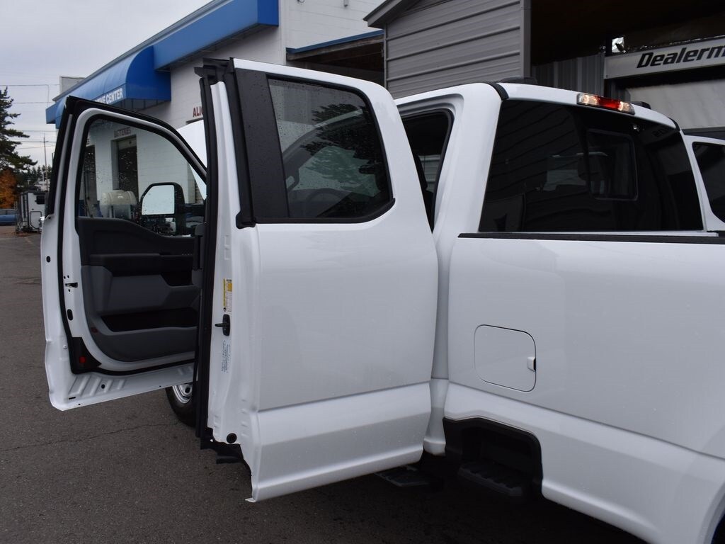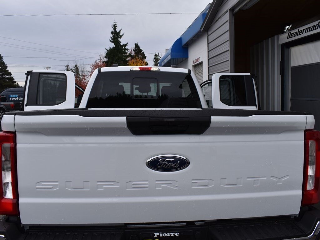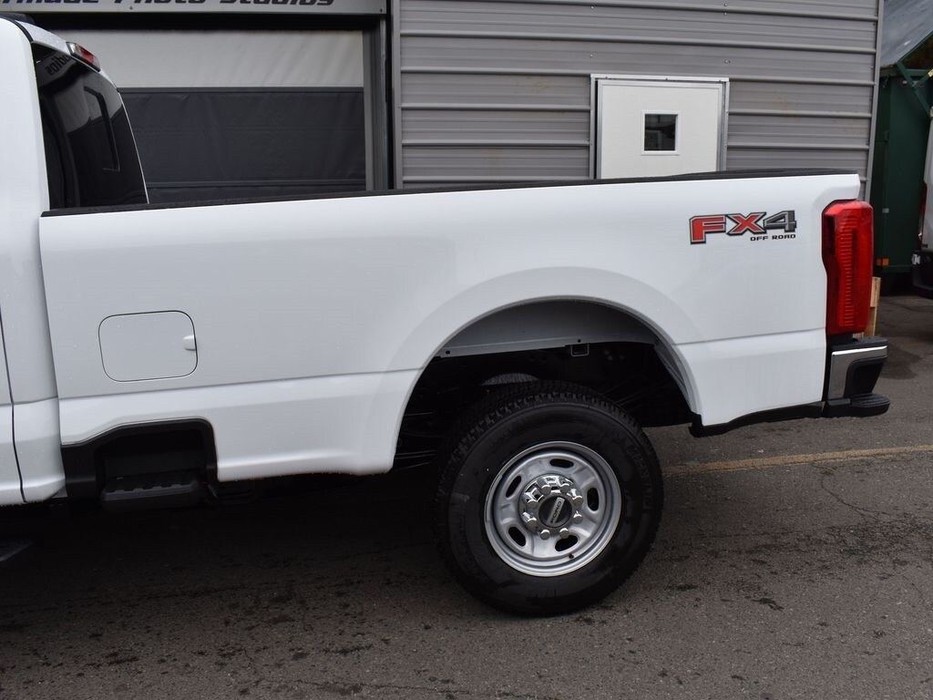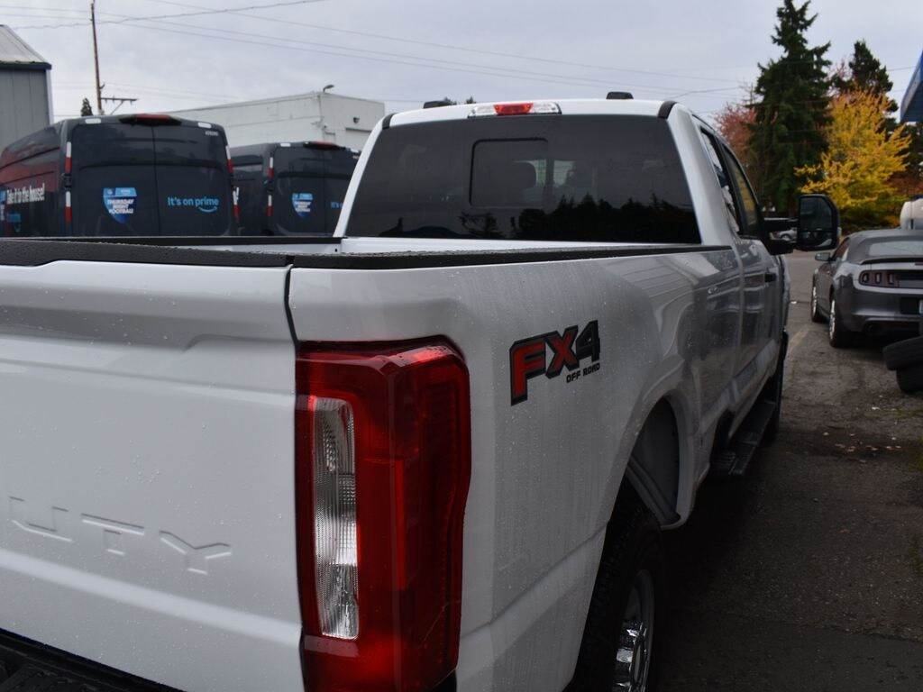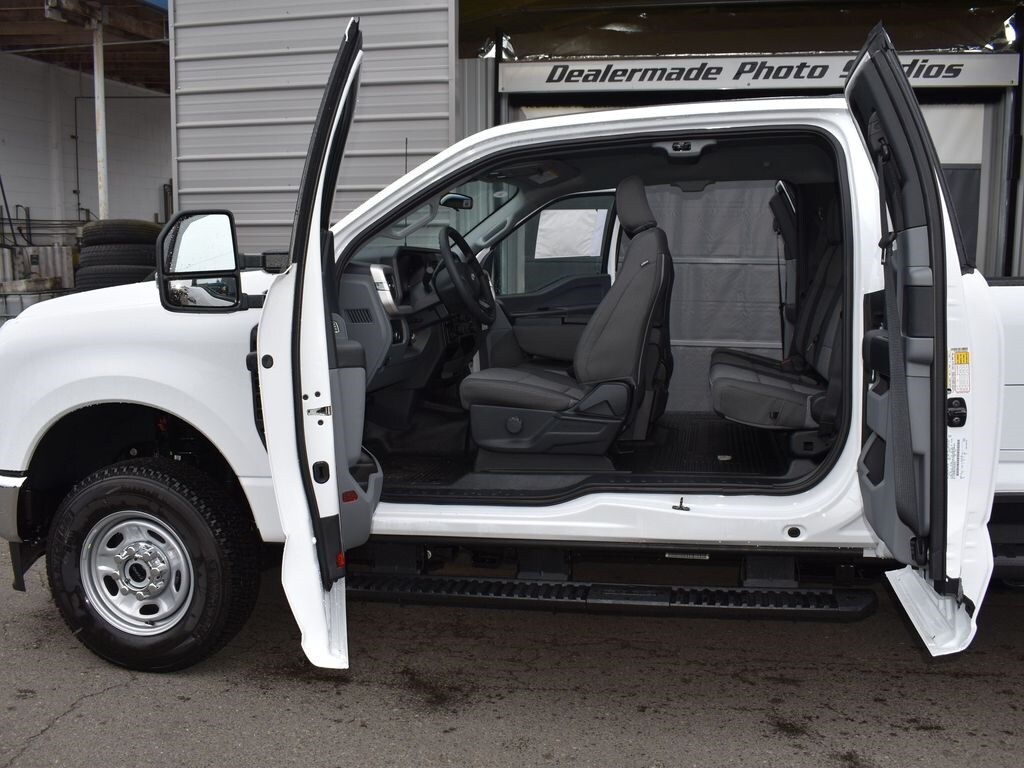 Preferred Equipment Package 610A, 10-speed TorqShift-G automatic transmission, LT245/75R17E all-terrain black sidewall tires, 3.73 electronic locking rear axle, FX4 Off-Road Package with skid plates, platform running boards, 10,800-lb Gross Vehicle Weight Rating package, backglass defrost, power sliding rear window, jack, upfitter switches, 190-amp (gas) / 250-amp (6.7L diesel) alternator, tailgate step, cloth 40/20/40 seat, privacy glass, Connectivity Package with one-year Ford app service, XL Chrome Package with fog lamps.