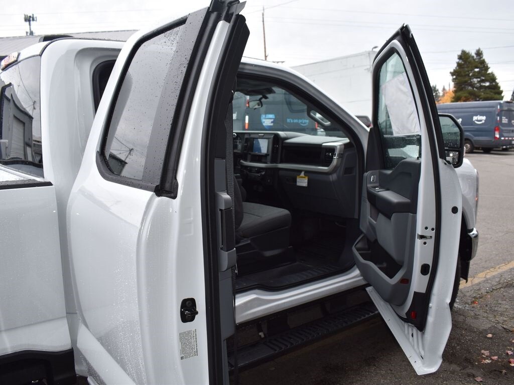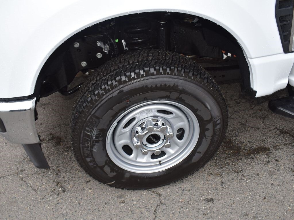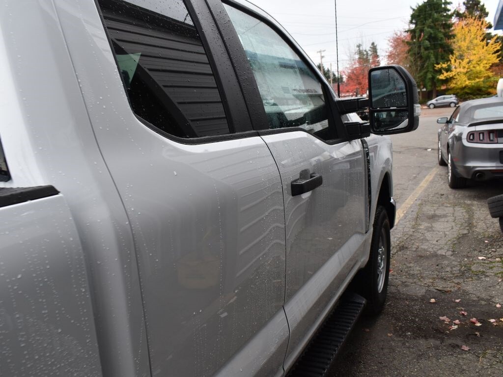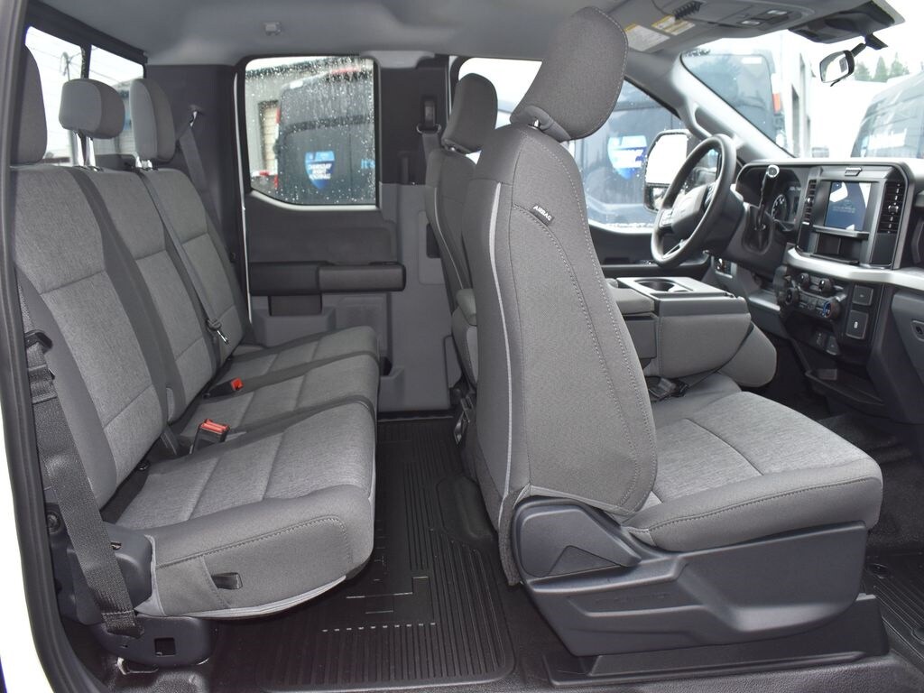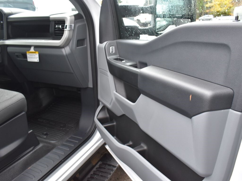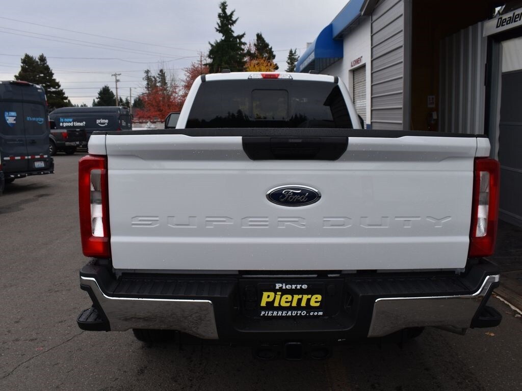 Preferred Equipment Package 610A, 10-speed TorqShift-G automatic transmission, LT245/75R17E all-terrain black sidewall tires, 3.73 electronic locking rear axle, FX4 Off-Road Package with skid plates, platform running boards, 10,800-lb Gross Vehicle Weight Rating package, backglass defrost, power sliding rear window, jack, upfitter switches, 190-amp (gas) / 250-amp (6.7L diesel) alternator, tailgate step, cloth 40/20/40 seat, privacy glass, Connectivity Package with one-year Ford app service, XL Chrome Package with fog lamps.