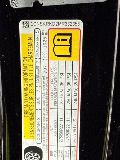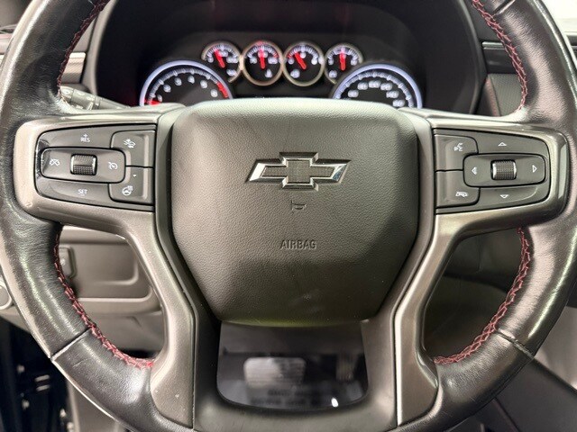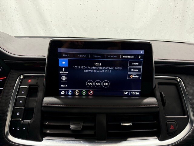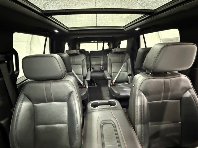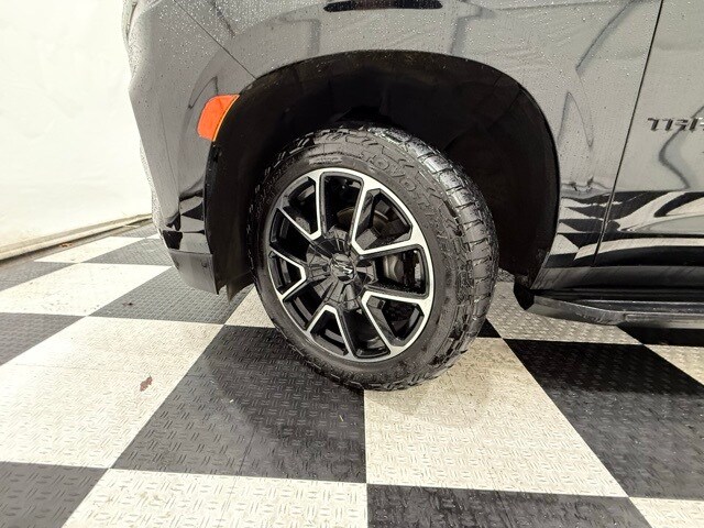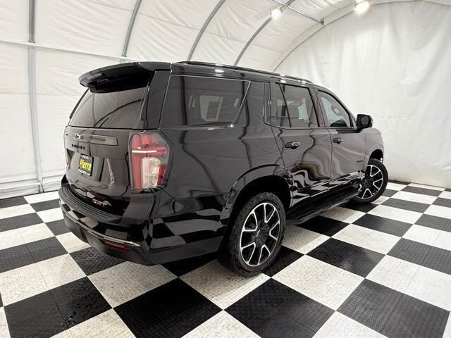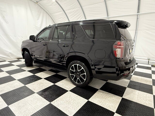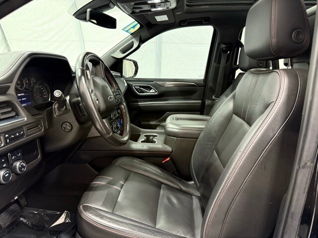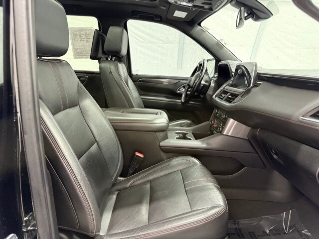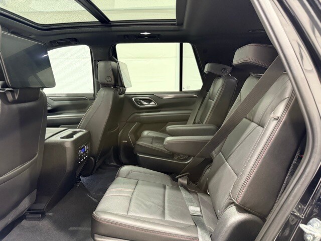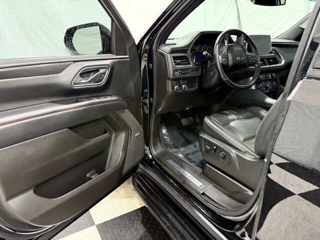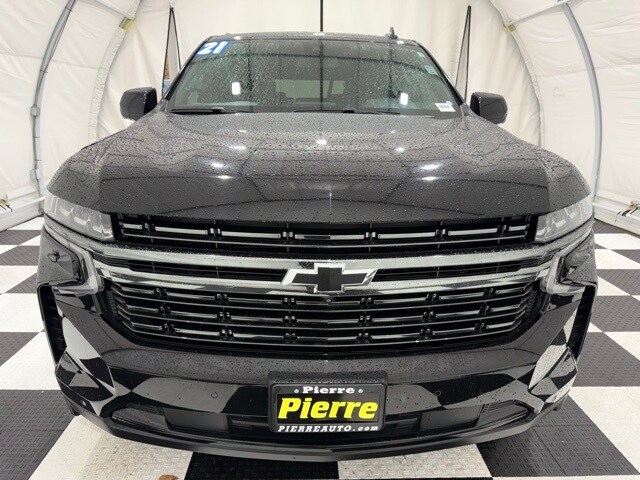2021 Chevrolet Tahoe 4WD RST: ** Luxury Package (HD surround vision, rear pedestrian alert, power-fold 3rd row seats, memory settings, heated steering wheel, heated power mirrors) ** Rear Media and Nav Package (12.6" dual rear seat-mounted screens, navigation, rear camera mirror) ** Panoramic sunroof ** Black exterior ** Jet Black leather interior ** 5.3L EcoTec3 V8 engine ** 10-speed automatic transmission ** 22" bright machined black aluminum wheels ** LED lighting ** Power front bucket seats ** Bose premium audio ** Wireless Apple CarPlay and Android Auto ** Remote start ** Adaptive cruise control