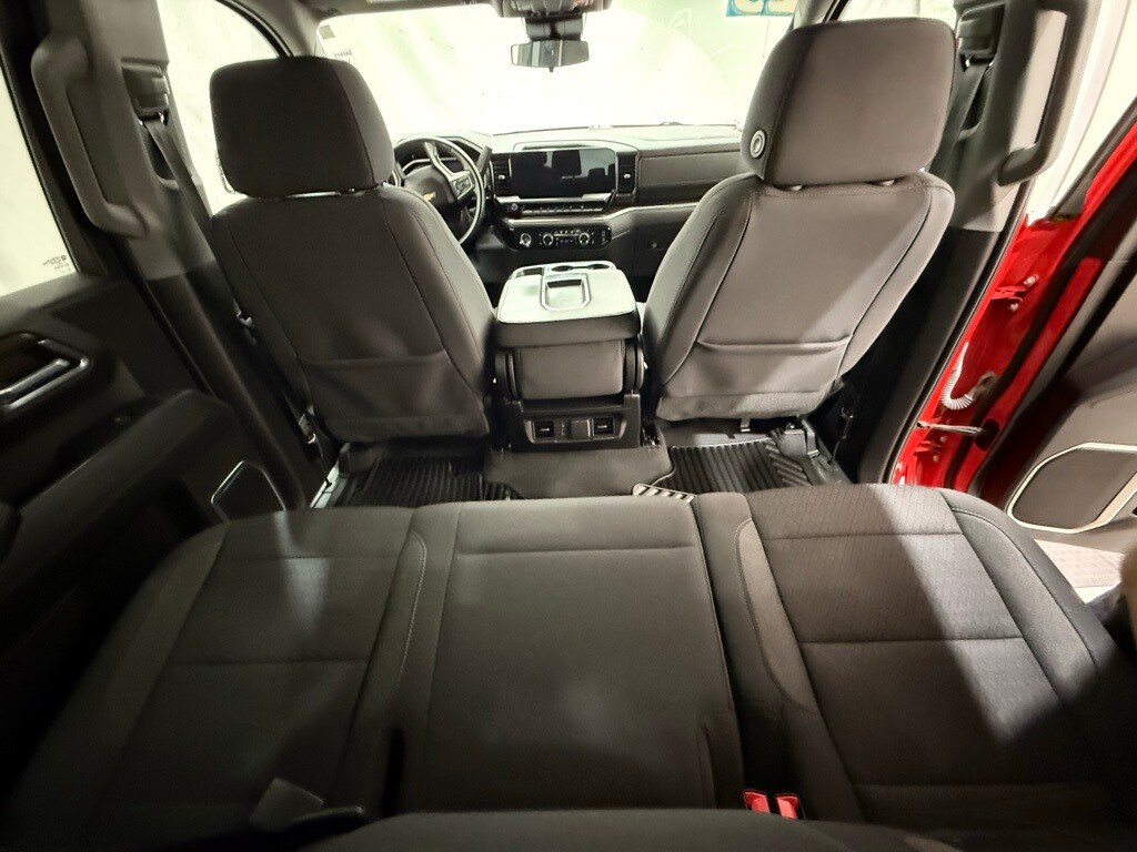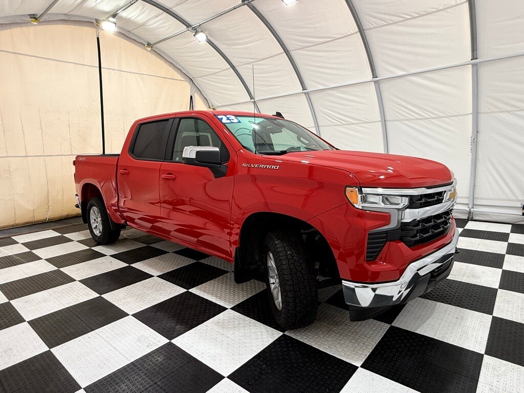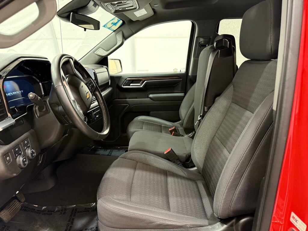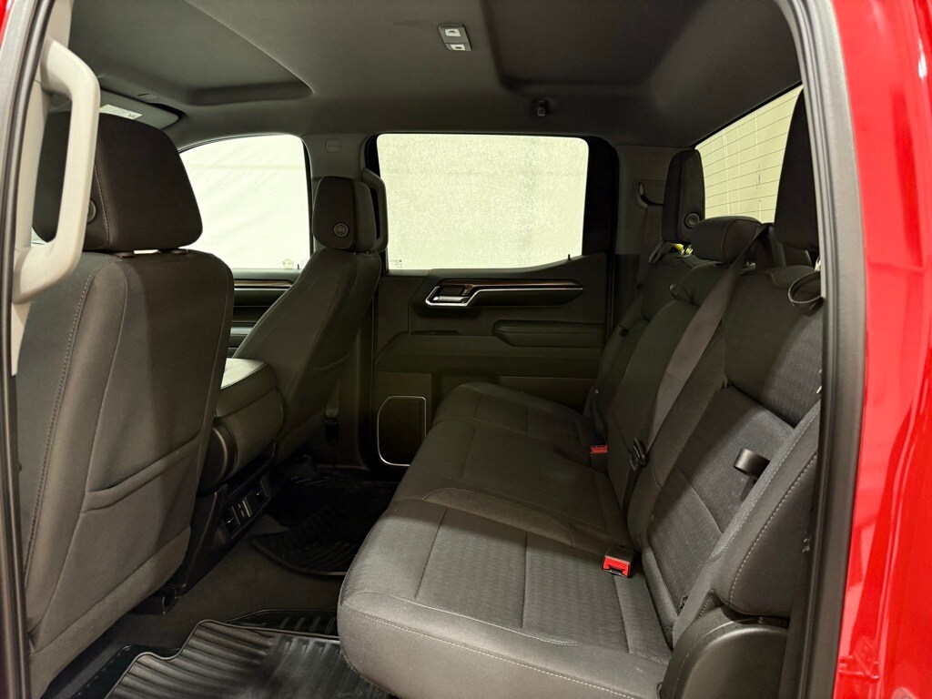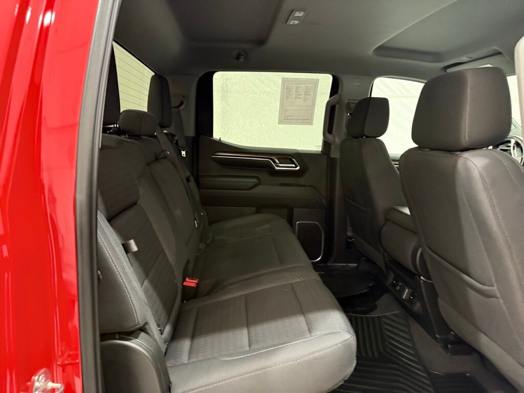 2023 Chevrolet Silverado Crew LT 4WD: ** Preferred Equipment Group 1LT (12.3" digital driver info center, 13.4" HD color touchscreen with Google built-in, Apple CarPlay and Android Auto, heated front seats, power-adjustable heated mirrors, LED reflector headlamps, remote start, rearview camera, trailer sway control) ** Red Hot exterior ** Jet Black interior ** 2.7L Turbo I4 engine ** 8-speed automatic transmission ** Rear seat storage package ** CornerStep rear bumper ** LED cargo area lighting ** Auto-locking rear differential ** Power windows and locks ** SiriusXM radio capability ** Tire pressure monitoring system