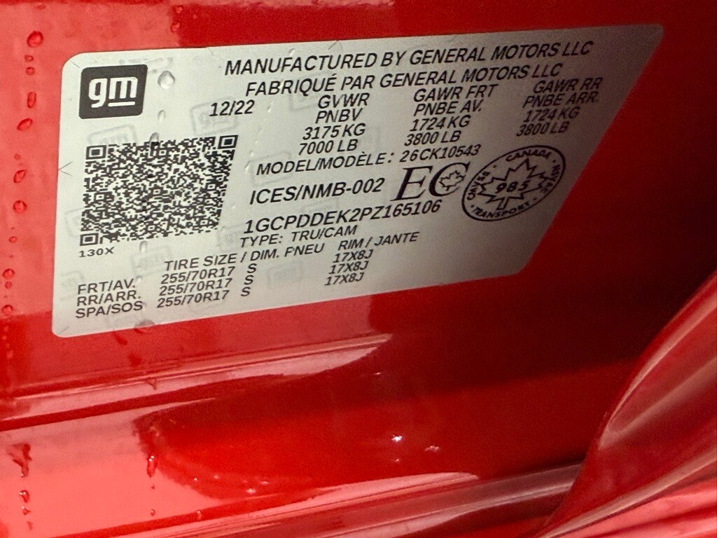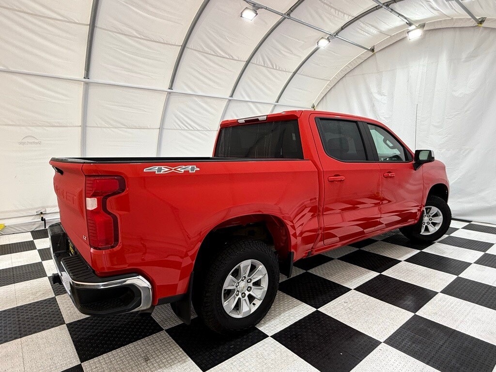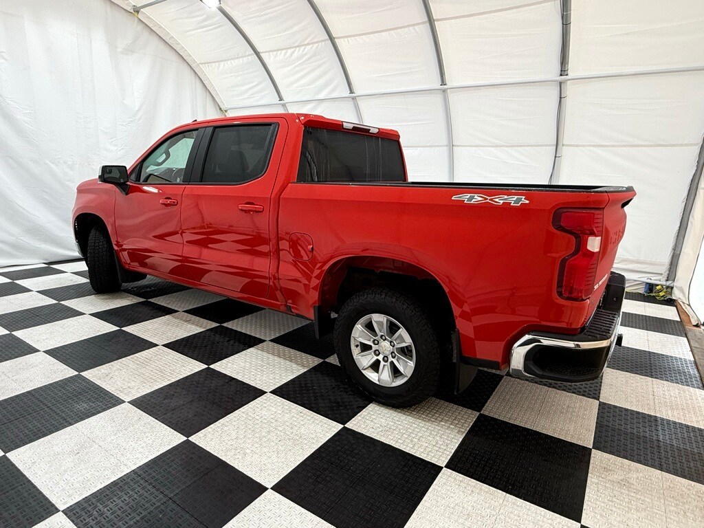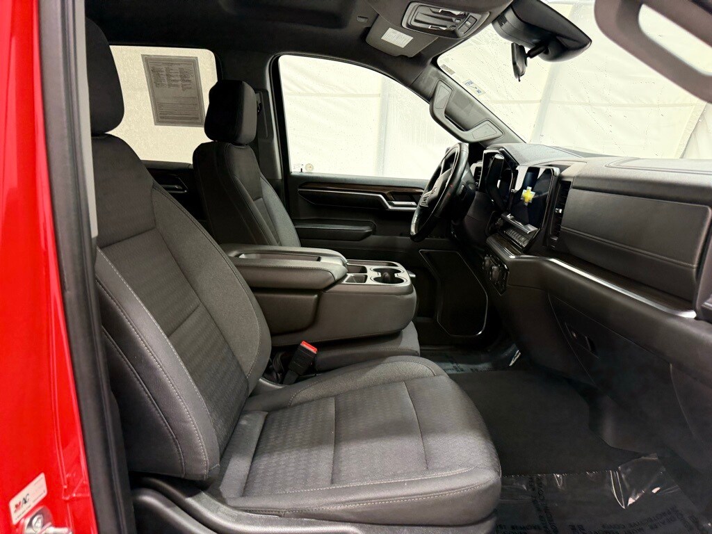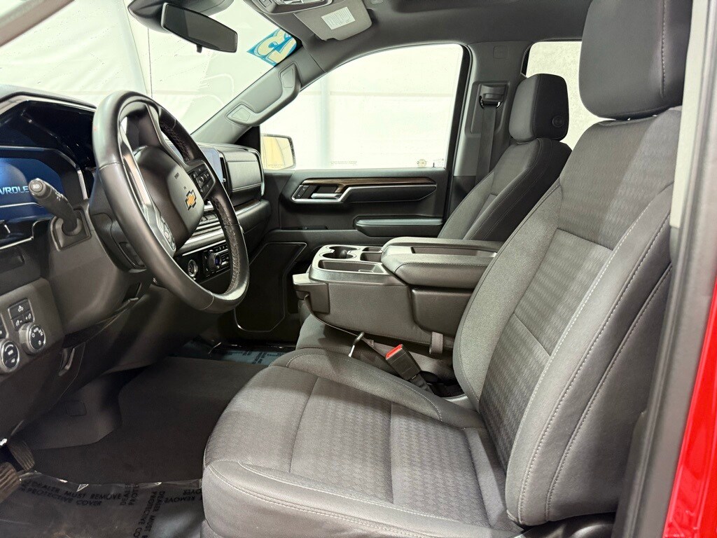 2023 Chevrolet Silverado Crew LT 4WD: ** Preferred Equipment Group 1LT (12.3" digital driver info center, 13.4" HD color touchscreen with Google built-in, Apple CarPlay and Android Auto, heated front seats, power-adjustable heated mirrors, LED reflector headlamps, remote start, rearview camera, trailer sway control) ** Red Hot exterior ** Jet Black interior ** 2.7L Turbo I4 engine ** 8-speed automatic transmission ** Rear seat storage package ** CornerStep rear bumper ** LED cargo area lighting ** Auto-locking rear differential ** Power windows and locks ** SiriusXM radio capability ** Tire pressure monitoring system