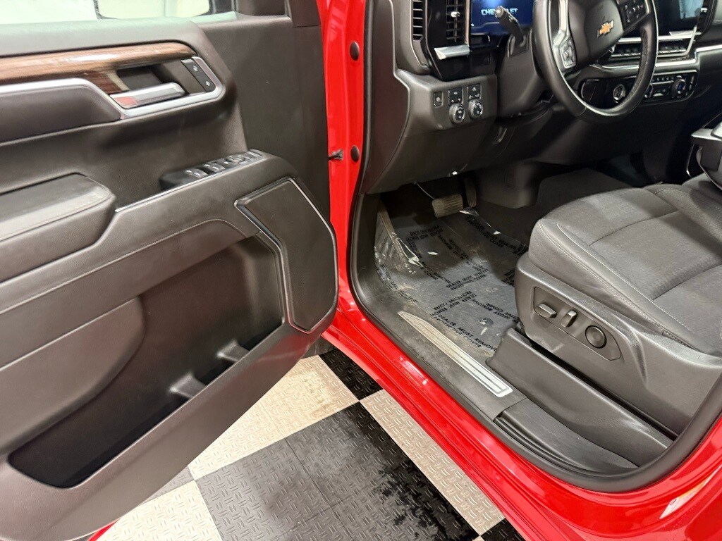 2023 Chevrolet Silverado Crew LT 4WD: ** Preferred Equipment Group 1LT (13.4" HD color touchscreen with Google built-in, 12.3" digital driver display, Apple CarPlay and Android Auto, heated front seats, remote start, power-adjustable heated mirrors, LED reflector headlamps, rearview camera, trailer sway control) ** Red Hot exterior ** Jet Black interior ** 2.7L Turbo I4 engine ** 8-speed automatic transmission ** Rear seat storage package ** CornerStep rear bumper ** LED cargo area lighting ** Auto-locking rear differential ** Power windows and locks ** Tire pressure monitoring system