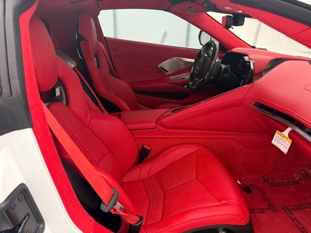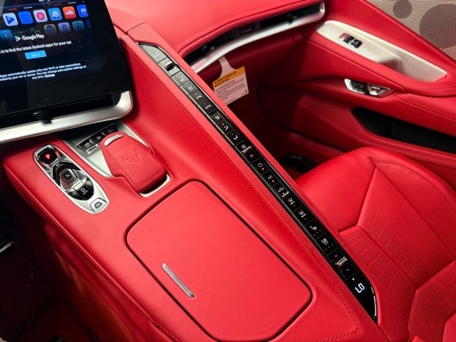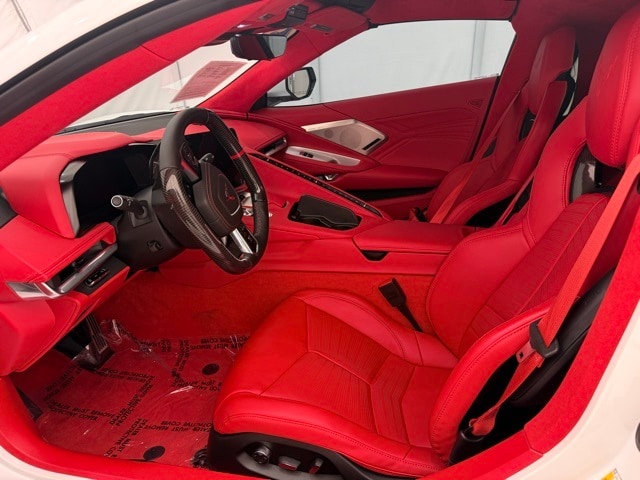 2025 Chevrolet Corvette Z06 Coupe 3LZ: ** Arctic White exterior with Adrenaline Red Dipped interior ** 5.5L V8 DI high-output naturally aspirated engine with flat-plane crank ** 8-speed dual clutch transmission ** Carbon Ceramic Brakes ** $8,495 ** Z07 Performance Package ** $8,995 ** 20"/21" Carbon Flash Aluminum Wheels with Michelin Pilot Sport Cup 2 Tires ** $13,495 ** Roof Panel in Body Color ** $0 ** Carbon Fiber Ground Effects, Front Splitter, and Rear Spoiler ** included in Z07 ** Magnetic Selective Ride Control and Electronic Limited Slip Differential ** standard ** 3LZ Premium Interior with GT2 Seats, Carbon Fiber Trim, and Suede Microfiber-Wrapped Upper Interior ** $11,950 ** Bose Performance Series 14-Speaker Audio, Wireless Apple CarPlay & Android Auto ** standard ** Visible Carbon Fiber Mirrors ** $1,295 ** Battery Protection Package ** $170 ** Black Lug Nuts ** $275 ** Black Z06 Wheel Center Caps ** $250 ** Roof Edge Painted Black ** $695 ** and Carbon Flash Metallic Mirrors ** $135 ** MSRP $164,555