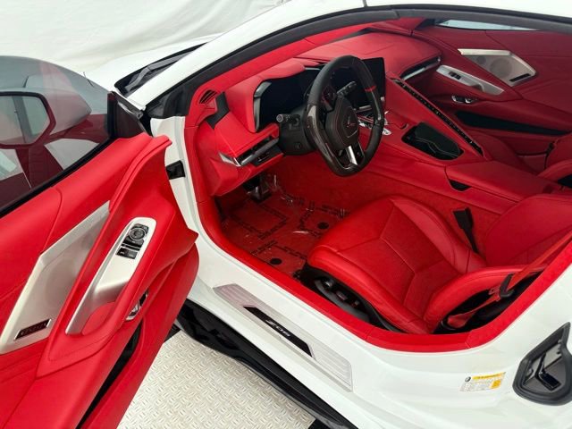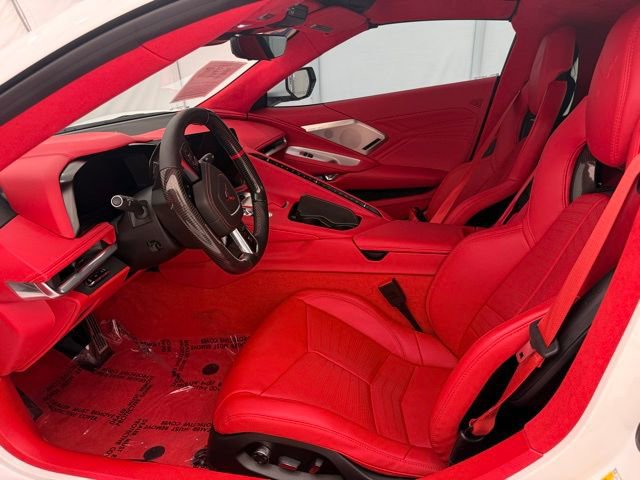2025 Chevrolet Corvette Z06 Coupe 3LZ: ** Arctic White exterior with Adrenaline Red Dipped interior ** 5.5L V8 DI high-output naturally aspirated engine with flat-plane crank ** 8-speed dual clutch transmission ** Carbon Ceramic Brakes ** $8,495 ** Z07 Performance Package ** $8,995 ** 20/21 Carbon Flash Aluminum Wheels with Michelin Pilot Sport Cup 2 Tires ** $13,495 ** Roof Panel in Body Color ** $0 ** Carbon Fiber Ground Effects, Front Splitter, and Rear Spoiler ** included in Z07 ** Magnetic Selective Ride Control and Electronic Limited Slip Differential ** standard ** 3LZ Premium Interior with GT2 Seats, Carbon Fiber Trim, and Suede Microfiber-Wrapped Upper Interior ** $11,950 ** Bose Performance Series 14-Speaker Audio, Wireless Apple CarPlay & Android Auto ** standard ** Visible Carbon Fiber Mirrors ** $1,295 ** Battery Protection Package ** $170 ** Black Lug Nuts ** $275 ** Black Z06 Wheel Center Caps ** $250 ** Roof Edge Painted Black ** $695 ** and Carbon Flash Metallic Mirrors ** $135 ** MSRP $164,555