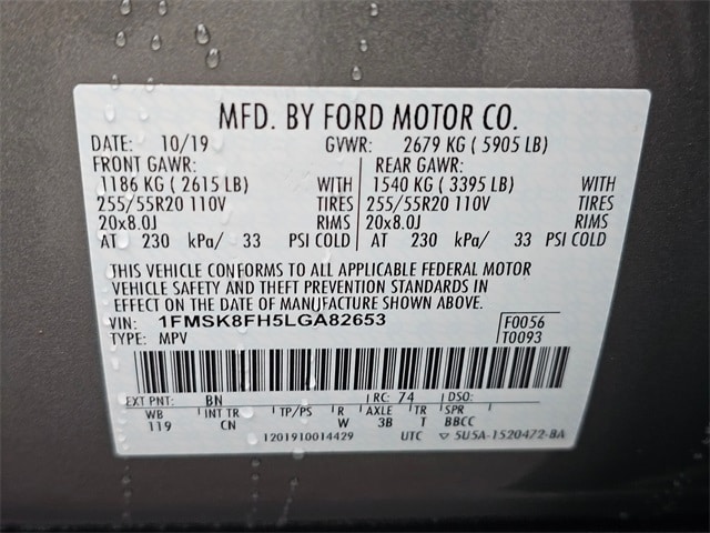- Front tires: 255/55HR20.0