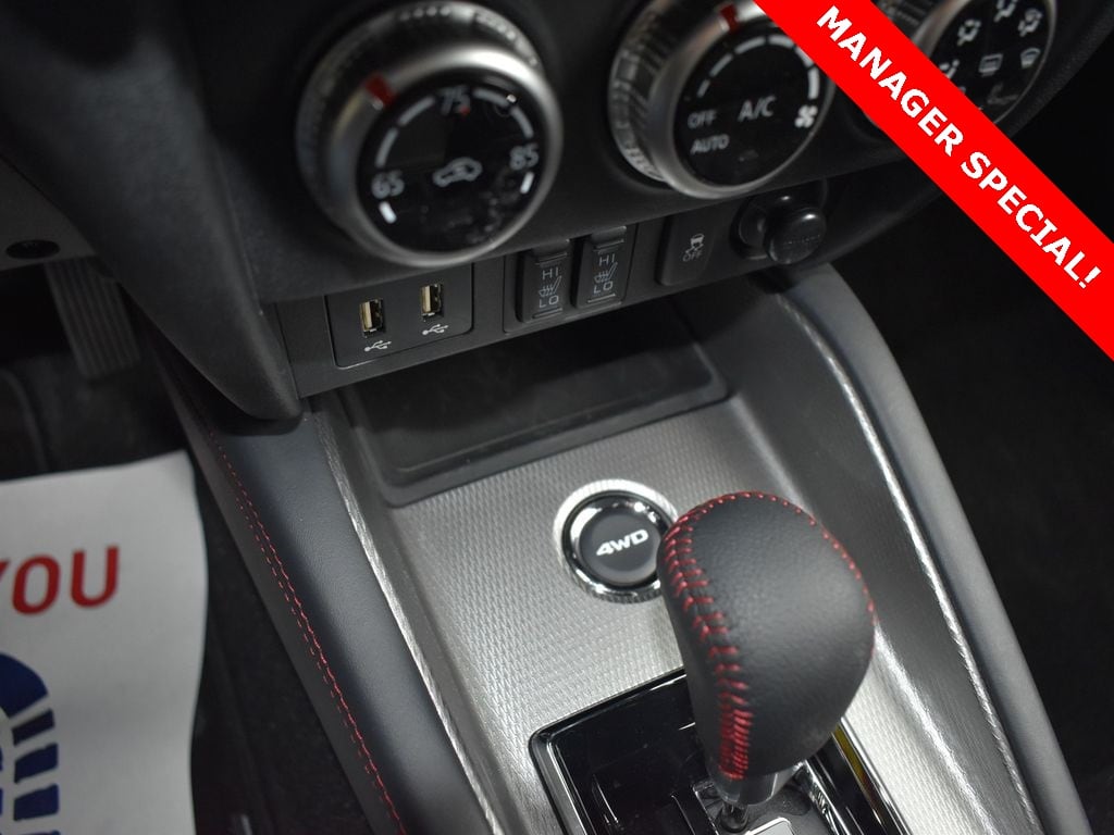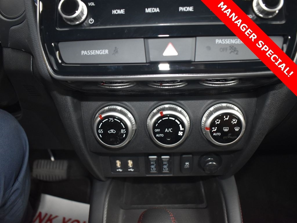 2.0L MIVEC DOHC 4-cylinder engine, continuously variable transmission, all-wheel control, LED low and high beam headlights, front rain-sensing wipers, 18" black-painted alloy wheels, heated front seats, leather-wrapped steering wheel, shift knob, and parking brake lever with red stitching, 8.0" smartphone-link display audio, Apple CarPlay and Android Auto, SiriusXM with 3-month all access trial, forward collision mitigation with pedestrian detection, lane departure warning, automatic high beam, rear seat alert