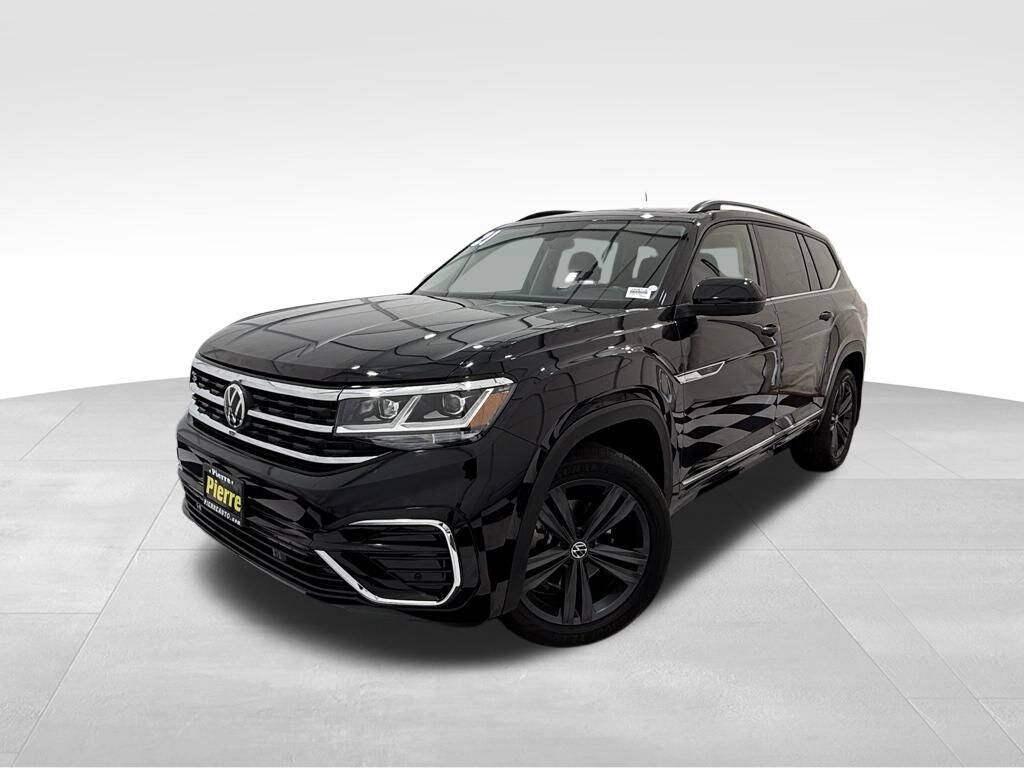 2021 Volkswagen Atlas V6 SE w/ Technology R-Line 4MOTION Deep Black Pearl exterior / Shetland leatherette interior MSRP when new $45,274 powered by a 3.6L V6 with 8-speed automatic Tiptronic and 4MOTION all-wheel drive includes R-Line Package ($1,960) adding unique R-Line bumpers, badging, and stainless steel pedal caps 20" black triple 5-spoke alloy wheels ($895) and second-row captains chairs ($695) tech highlights include 8" touchscreen infotainment with App-Connect, wireless charging, remote start, adaptive cruise control, front/rear park distance control, and power liftgate safety features include Blind Spot Monitor, Rear Traffic Alert, Front Assist, and Lane Assist interior features leatherette upholstery, heated front seats, tri-zone automatic climate control, and panoramic sunroof