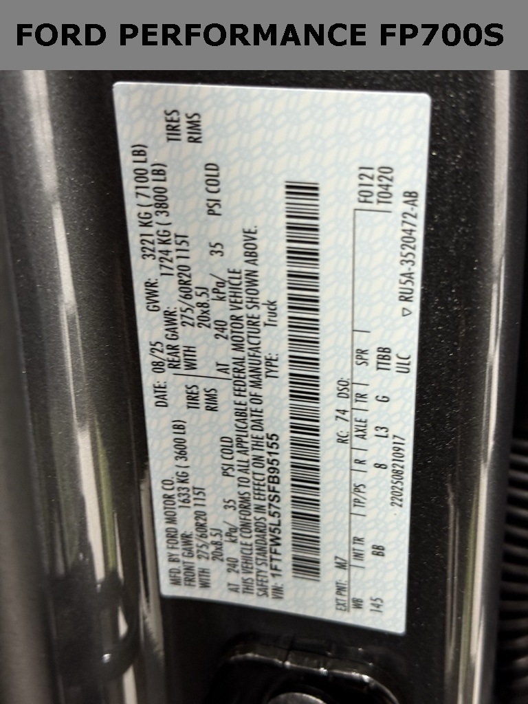 2025 Ford F-150 Lariat FORD PERFORMANCE FP700S PACKAGEFord Performance F-150 FP700S ** Bronze Package ** 5.0L Supercharged V8 (FP700S) with upgraded Ford Performance calibrations and intercooler for approx. 700 hp ** Performance exhaust note to match the power ** Sport-tuned suspension and handling enhancements ** Bronze Package highlights: unique bronze-finish wheels, bronze exterior accents/badging, and matching trim details for a standout factory-plus look ** 4x4 capability with confident tow/haul manners and daily-friendly drivability ** Modern tech with large touchscreen, smartphone integration, and driver-assist safety suite ** Aggressive Ford Performance styling and hardware throughout.